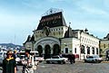 在阿林乌斯卡大街,一座建于1912年的意大利风格金黄色的建筑,格外引人注目,它是海参崴市的著名的陆港火车站,濒临世界闻名的不冻港--金角湾,是远东的交通中枢,距莫斯科9288公里,是西伯利亚大铁路的终点和通往亚洲太平洋各国海运的起点。现车站旁陈列着古老的蒸汽火车头和一座9288标志碑,表示此地距莫斯科9288公里。